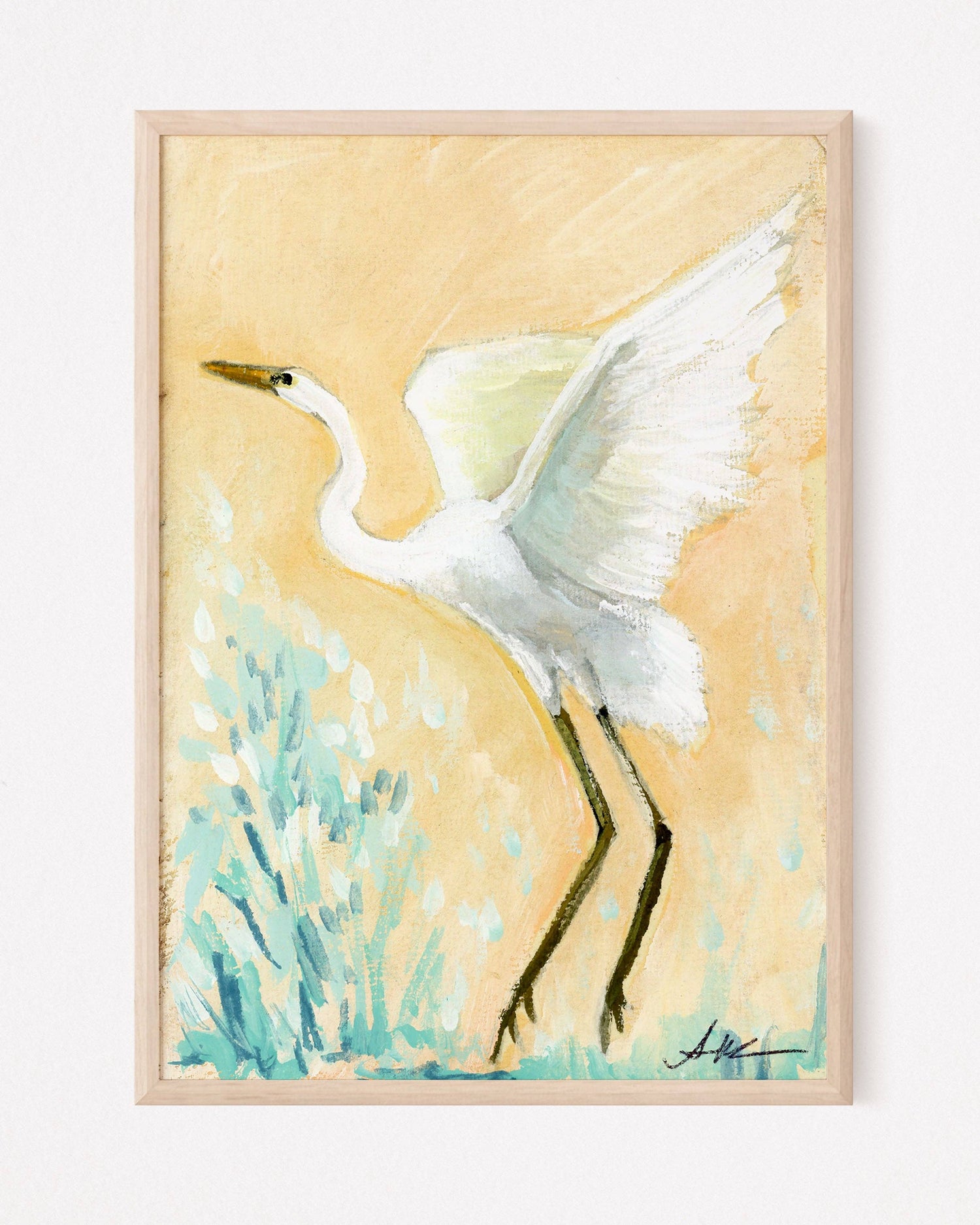 The Anna Egret Giclee Print is a charming portrayal of the beloved white egret. The artist's use of light and shadow creates a sense of depth and dimension, making this print a true work of art. Add a touch of elegance to your home with this exquisite piece.