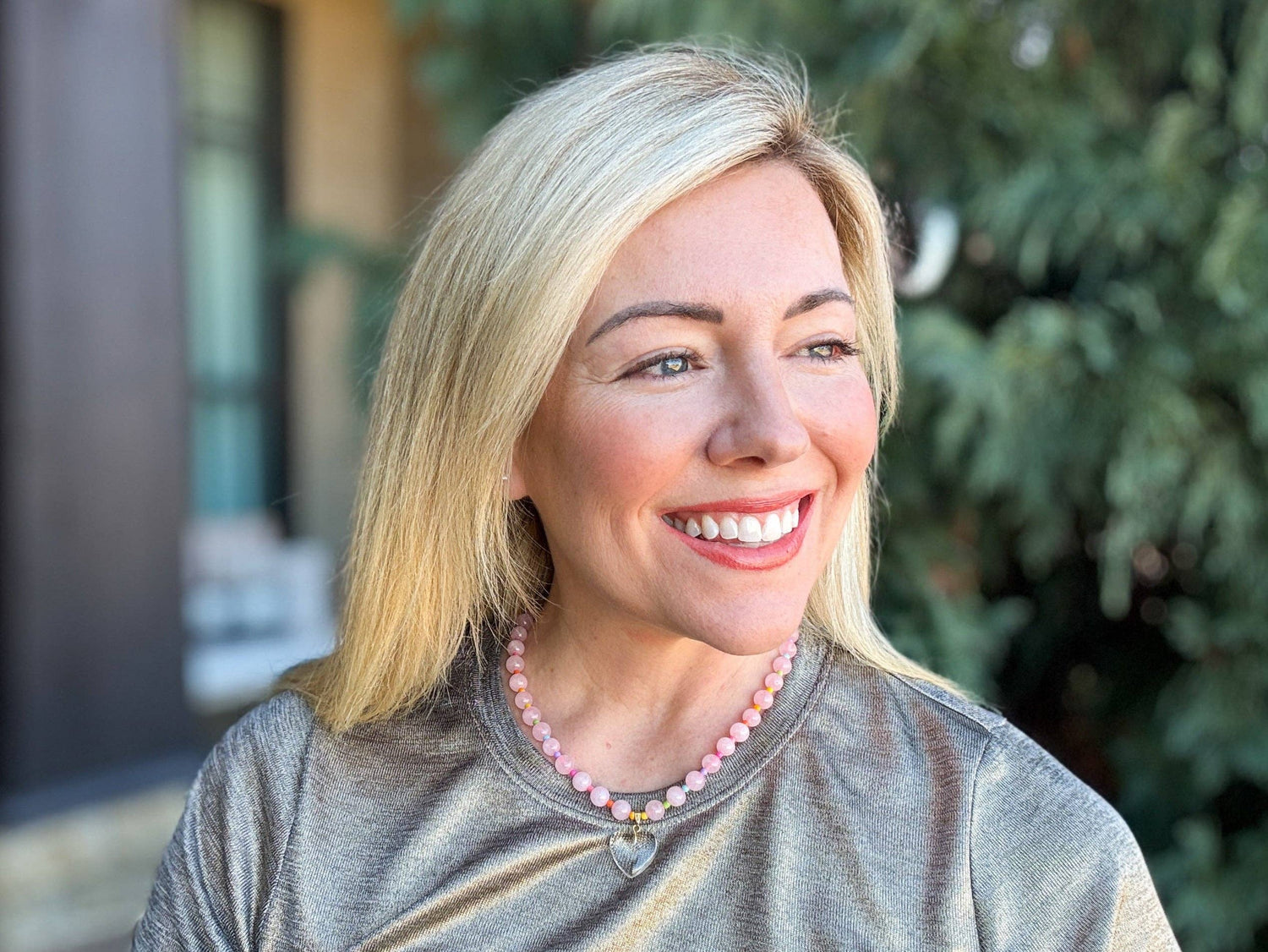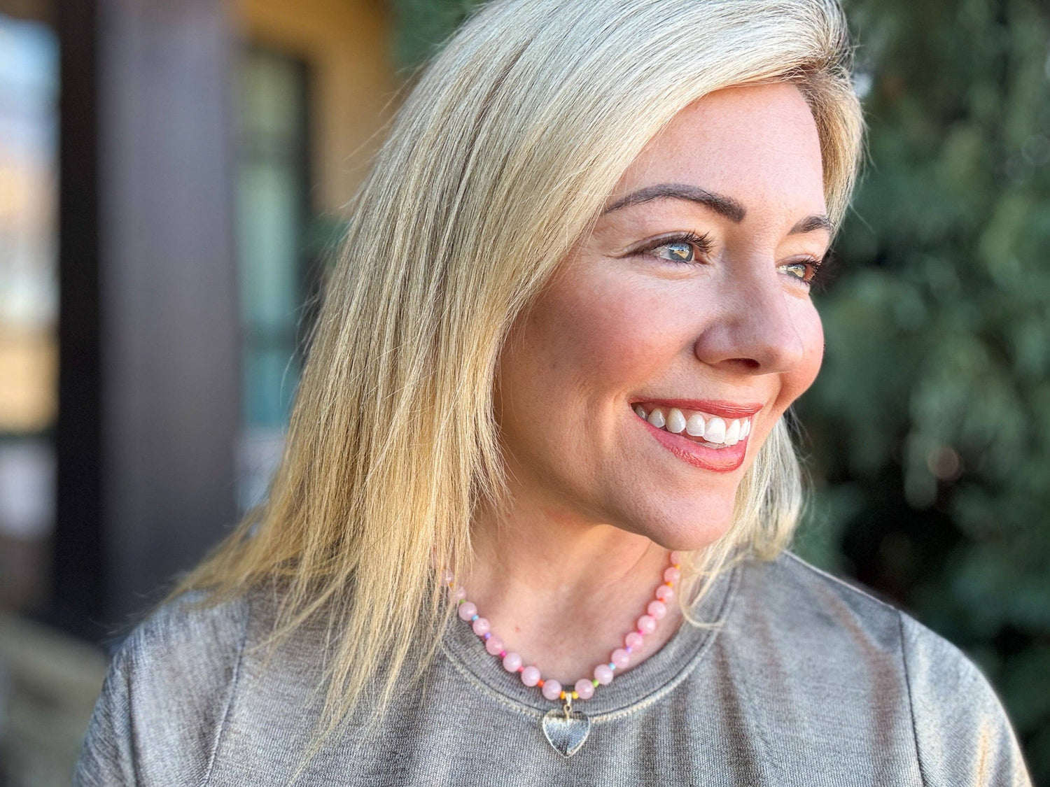 Beaded Necklace - Pink + Multi-Color w/Dangle Heart - Lottie