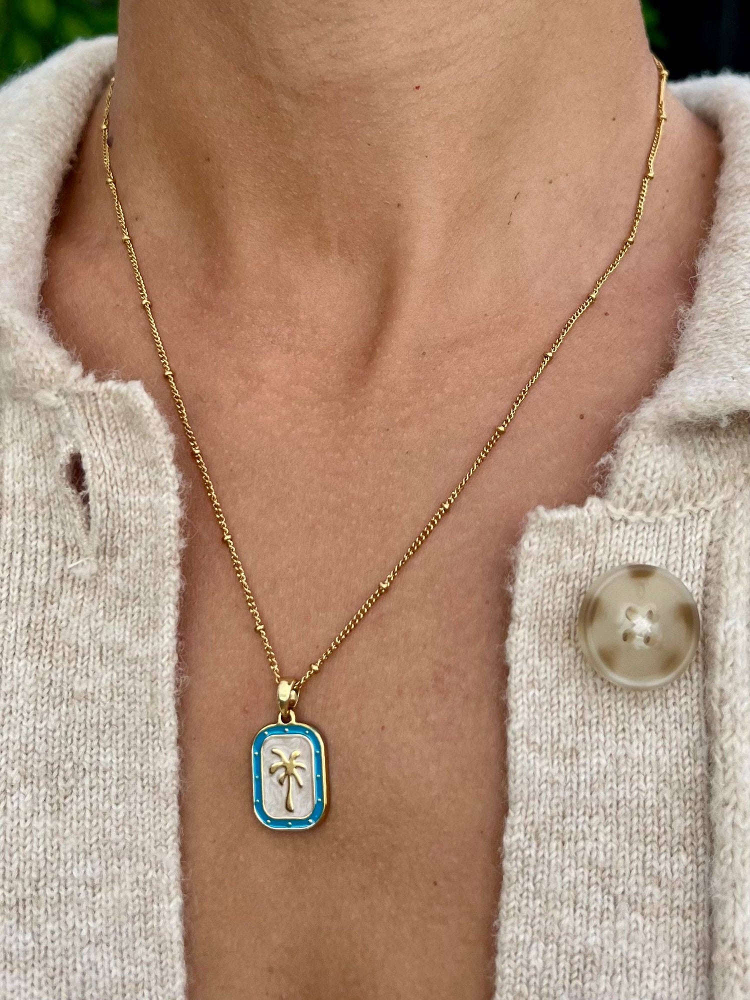Blue Palms Necklace | Waterproof Boho Surfer Beach Jewelry