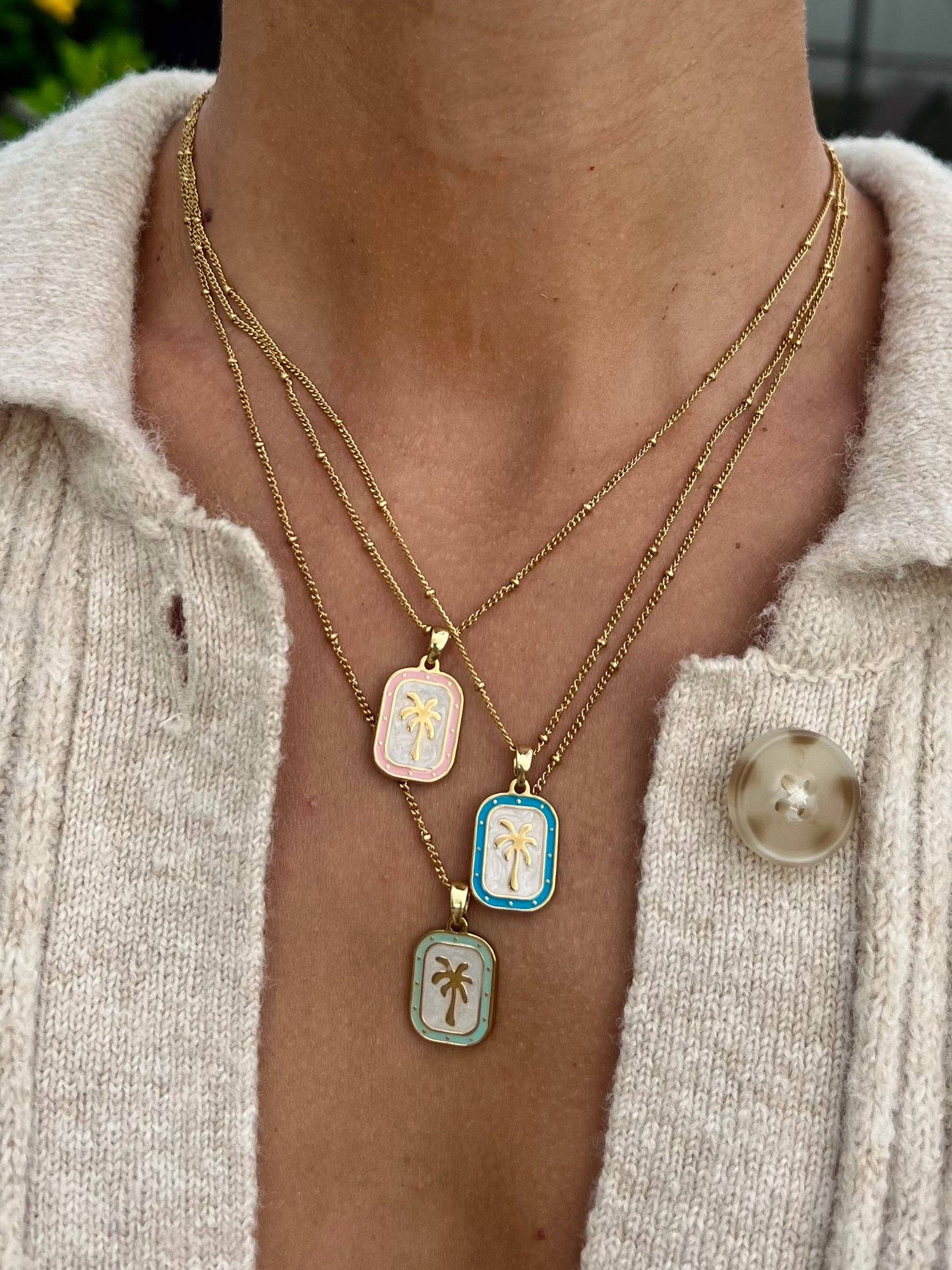 Add some coastal charm to your jewelry collection with our Blue Palms Necklace. Featuring a blue accented palm tree charm on a dainty chain, this piece is sure to add a beachy surfer touch for any occasion.