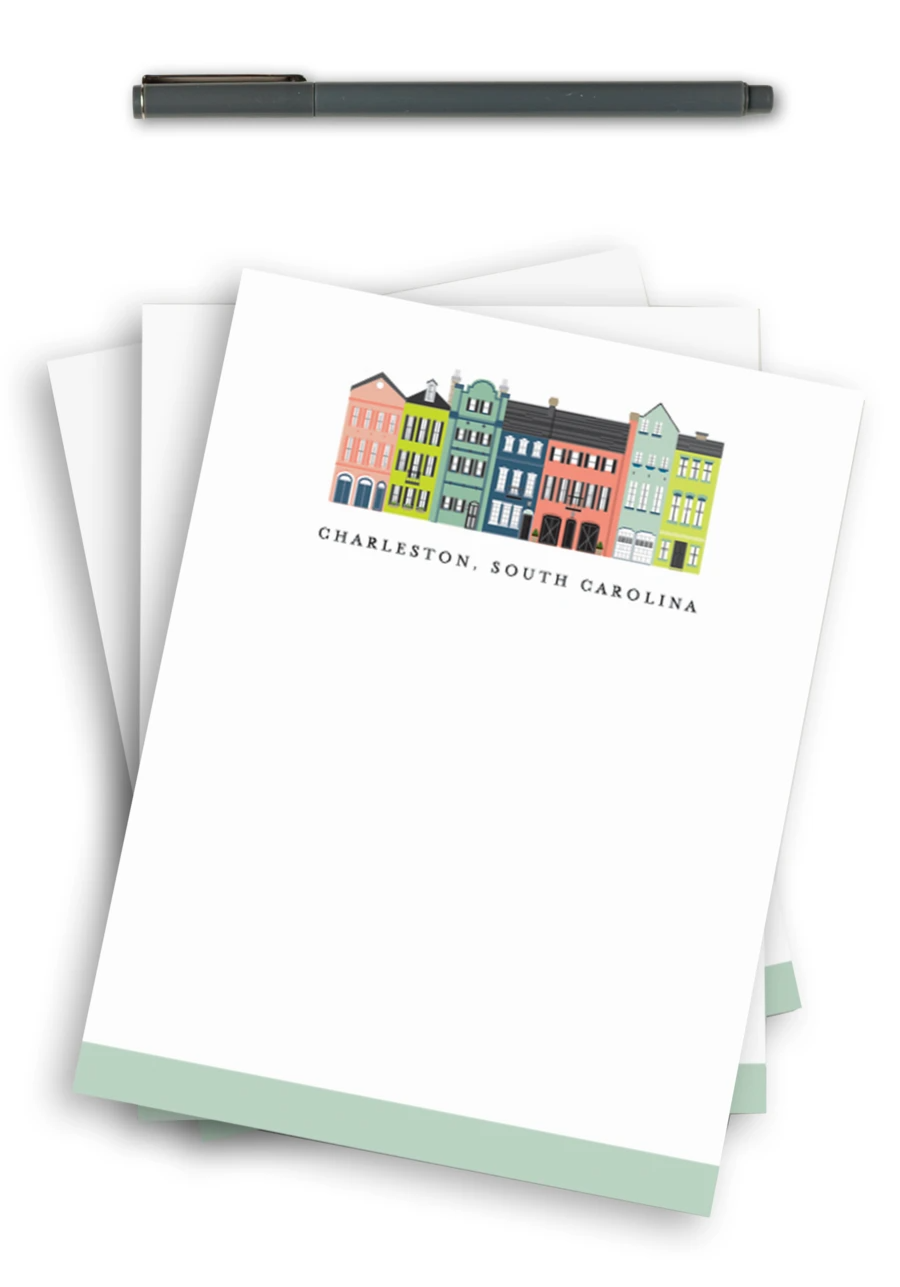 One of the prettiest cities to explore, this Charleston themed notepad features the rainbow row houses.
