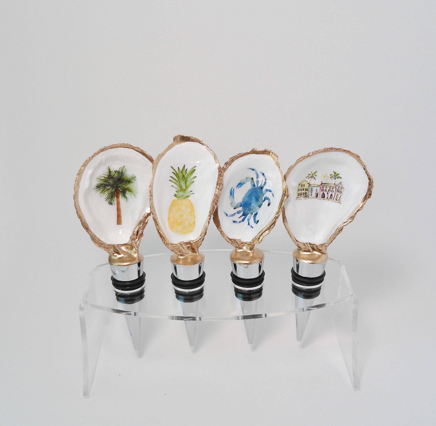 Elevate your wine presentation with this elegant oyster wine topper, handcrafted from a real oyster shell. Naturally beautiful and uniquely shaped, each topper is adorned with a lustrous, food-safe coating and fitted with a stainless steel or cork stopper to preserve your wine in style. Perfect for coastal-themed gatherings, thoughtful gifts, or simply adding a touch of ocean-inspired charm to your barware collection.