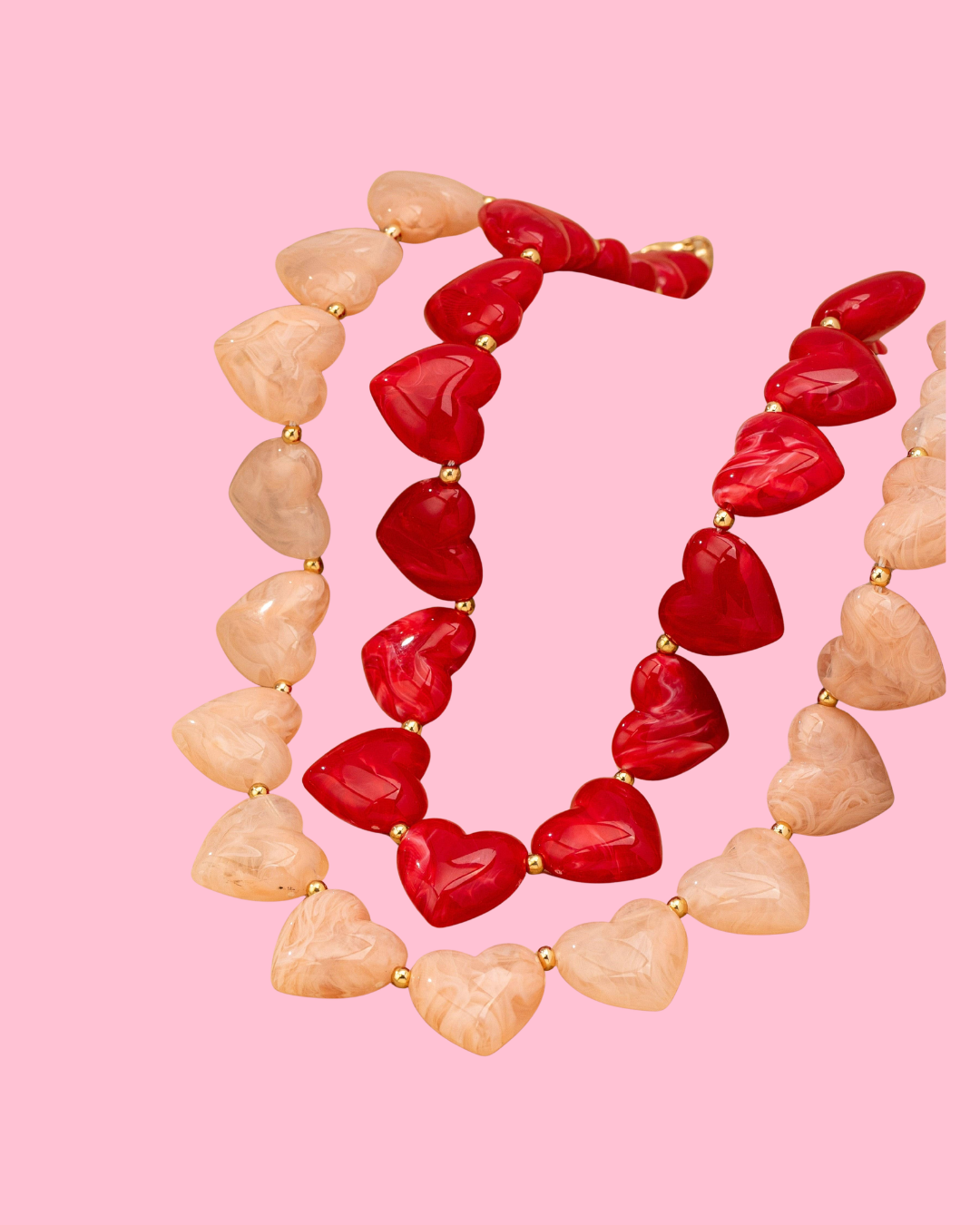 Large Heart Shape Beaded Necklace is a bold and charming statement piece, featuring a prominent glossy swirl luxurious heart-shaped pendant surrounded by vibrant beads, this necklace combines fun, fashion, and femininity.
