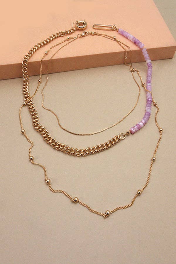 LAVENDAR BEAD TOGGLE MULTI LAYER NECKLACE