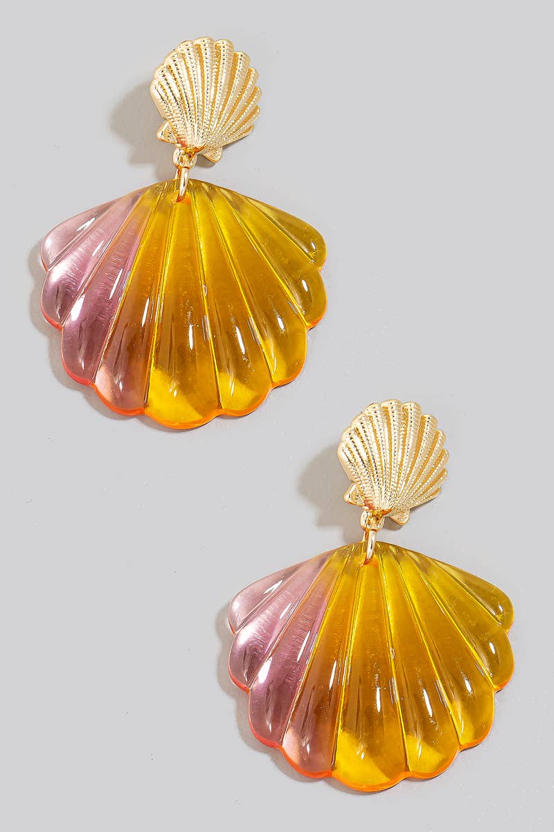 Resin And Metallic Shell Dangle Earrings