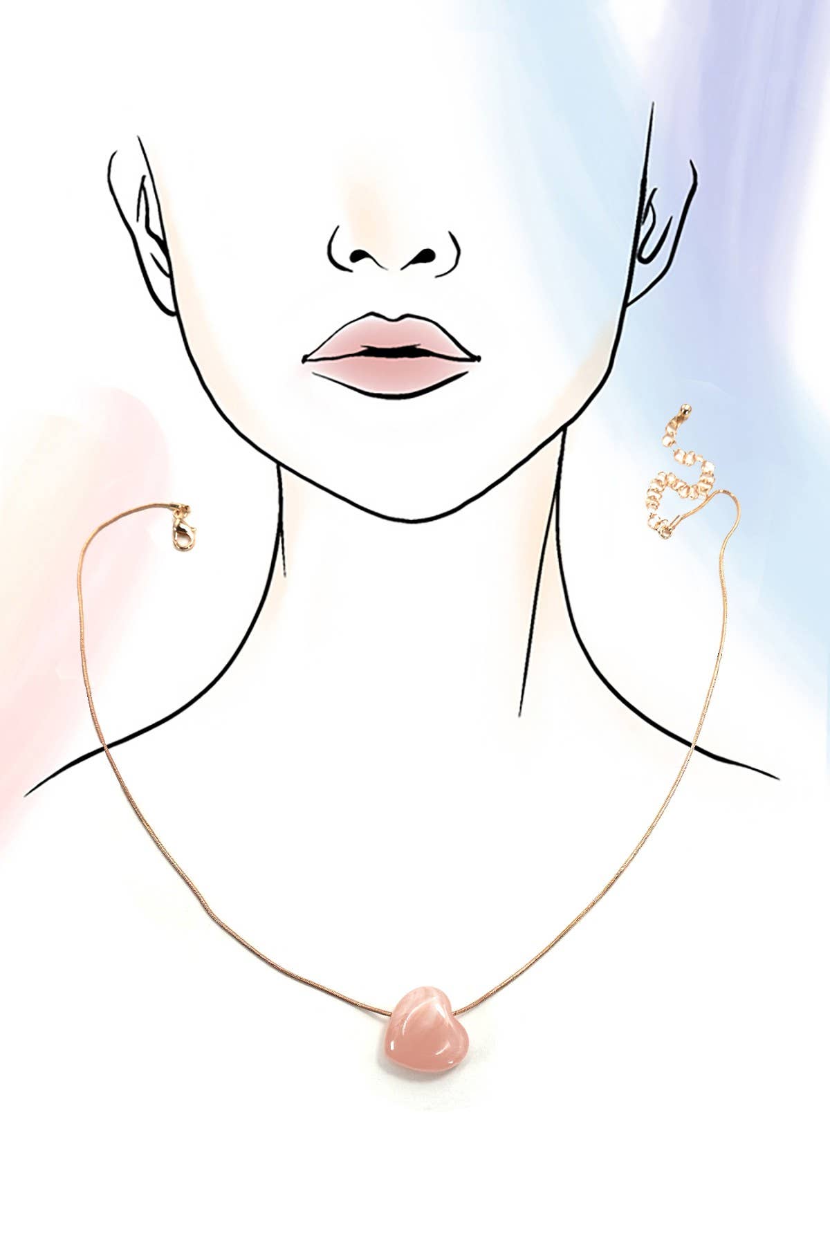 Rose Quartz Inspired Heart Charm Necklace features a sleek and elegant snake chain, perfectly complementing the soft, romantic glow of rose quartz on a heart-shaped charm.