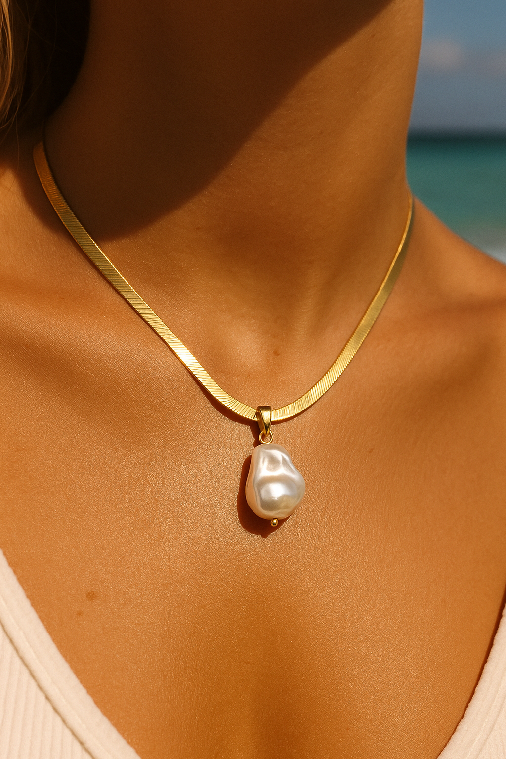 Snake Chain with Pearl Necklace 18k Gold Plated Summer