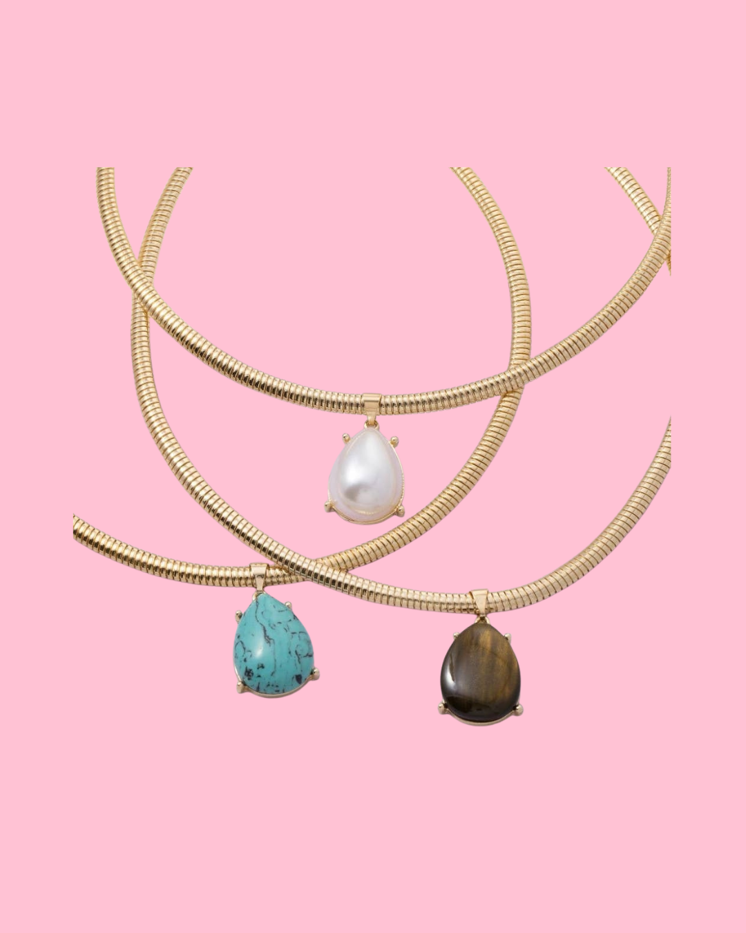 Teardrop Pendant Metallic Flexible Snake Chain Necklace