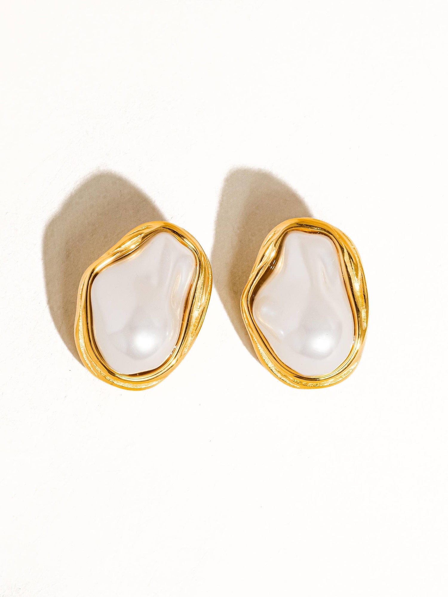 Yasmin 18K Gold Non-Tarnish Classic Pearl Round Earring